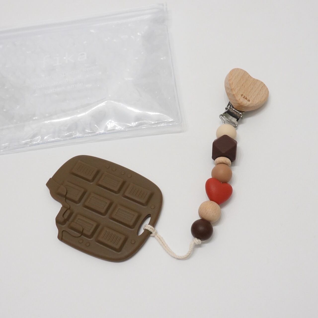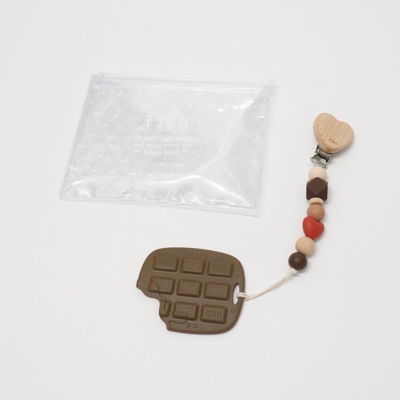 バレンタインギフトにぴったり!チョコレートの歯固めとミニホルダーのセットです。